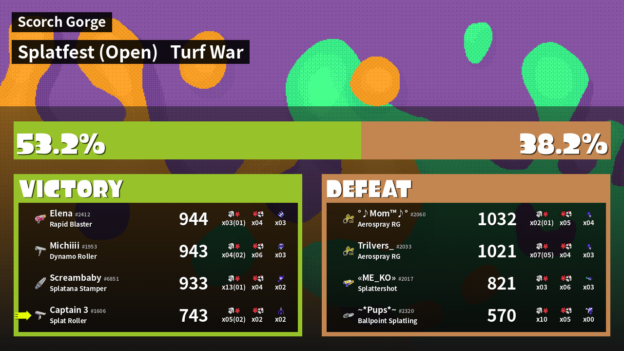 | Medals | #1 Super Jump Spot #1 Splat Assister #1 Ground Traveler | ||