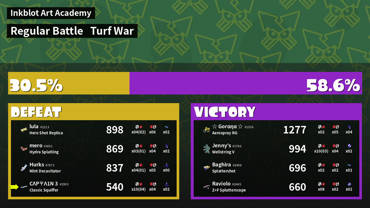 | Medals | #1 Overall Splatter #1 Enemy Splatter #1 Splat Assister | ||