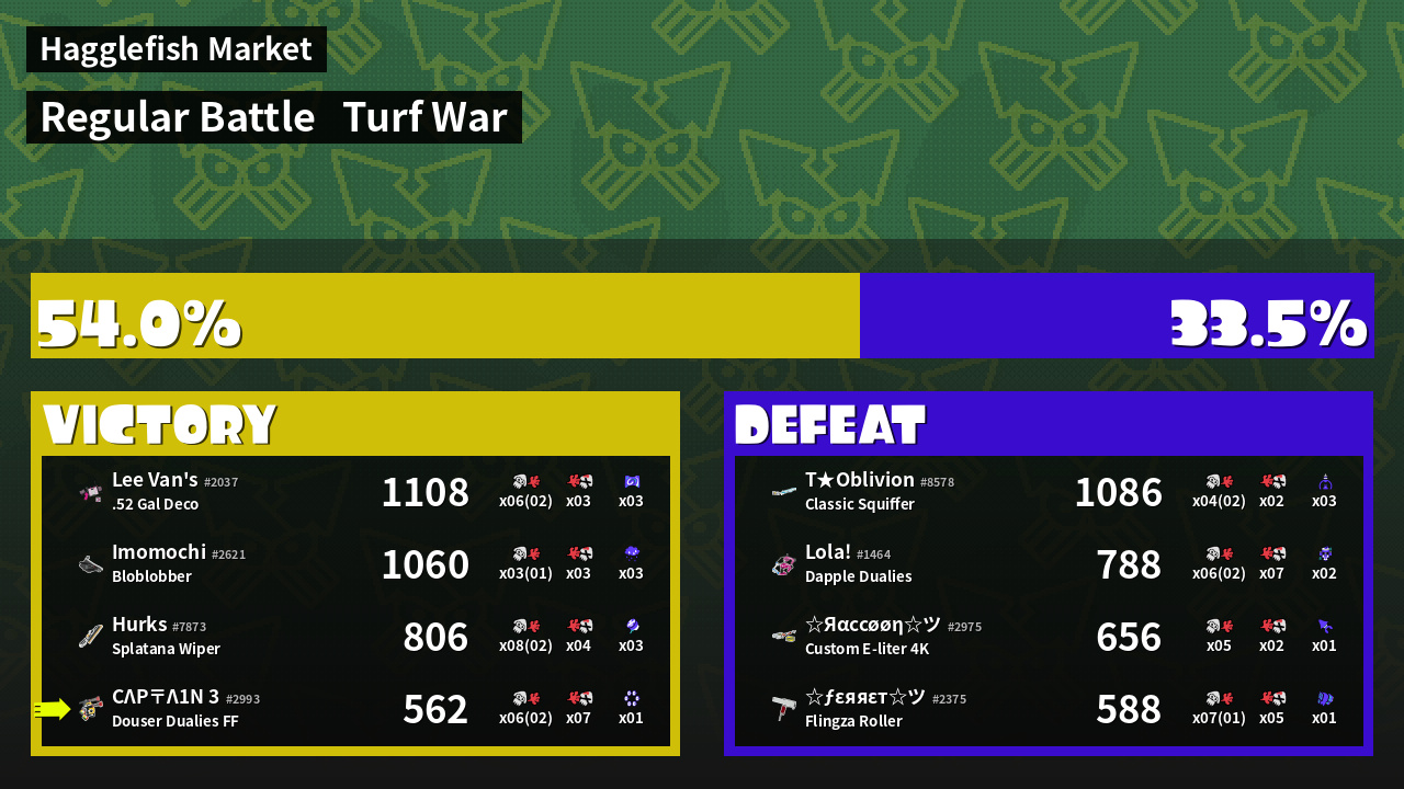 | Mode | Turf War - Regular Battle | ||