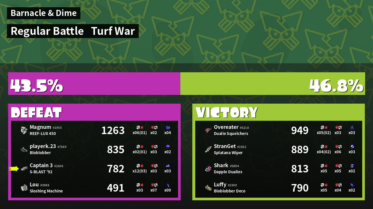 | Medals | #1 Overall Splatter #1 Popular Target #1 Enemy-Base Inker | ||