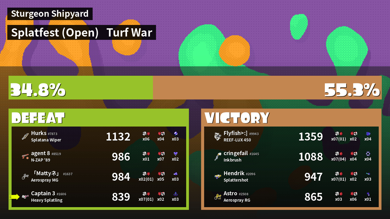 | Medals | #1 Overall Splatter #1 Enemy Splatter #1 Splat Assister | ||