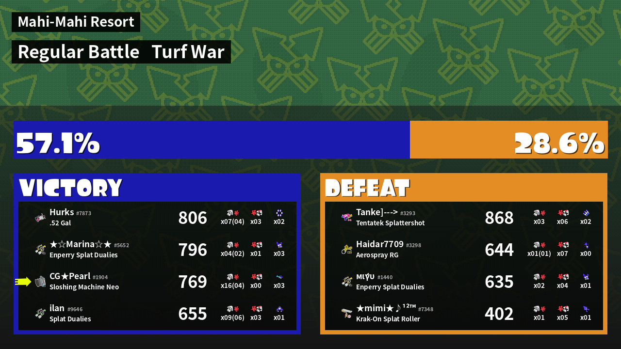 | Medals | #1 Overall Splatter #1 Enemy-Base Inker #1 Enemy Splatter | ||