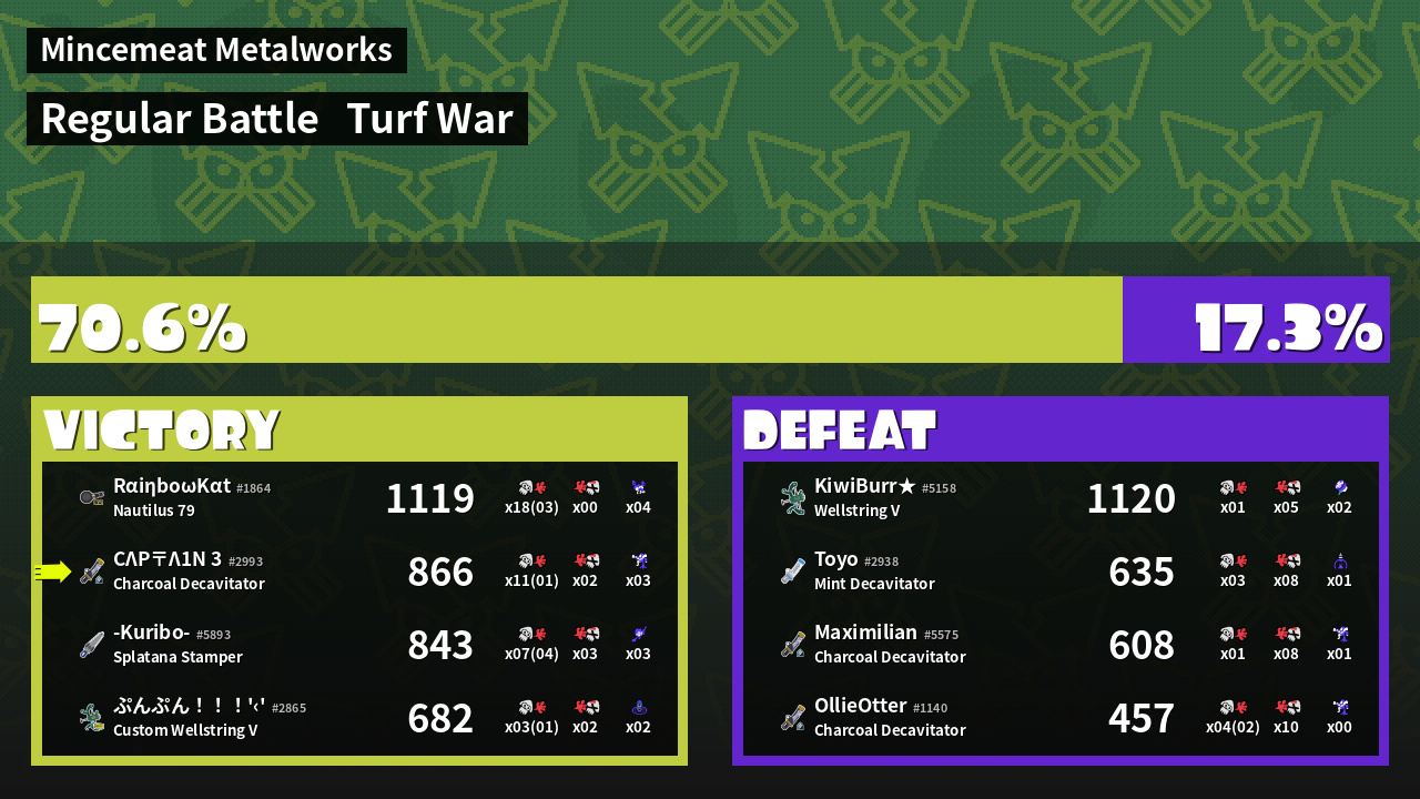 | Mode | Turf War - Regular Battle | ||
