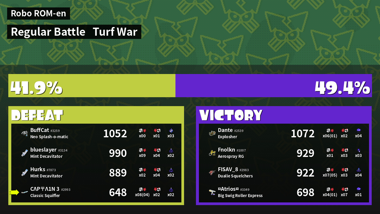| Mode | Turf War - Regular Battle | ||