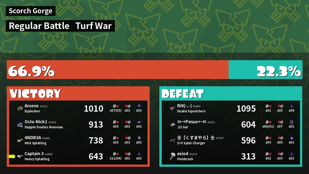 | Mode | Turf War - Regular Battle | ||