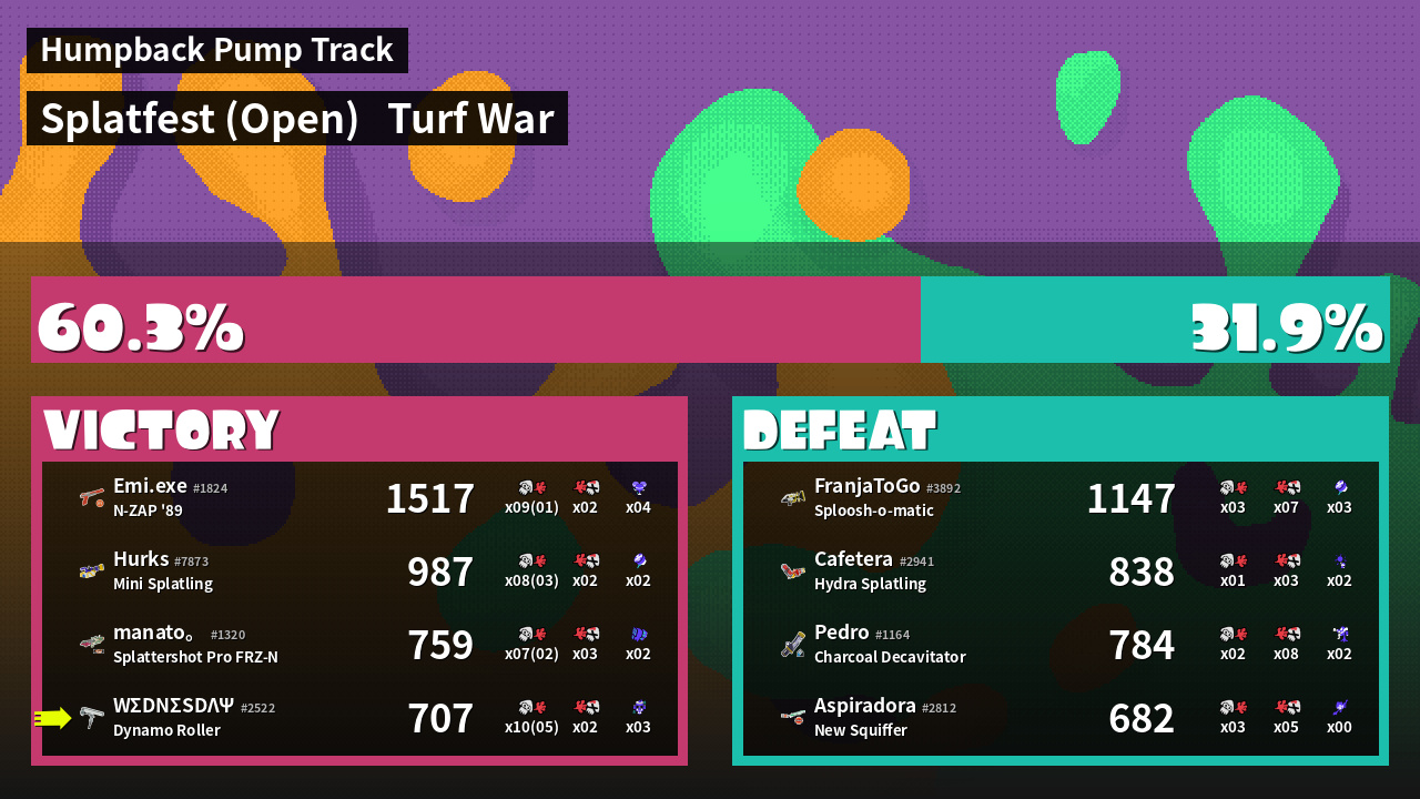 | Weapon | Dynamo Roller ( Sprinkler / Tacticooler) | ||
