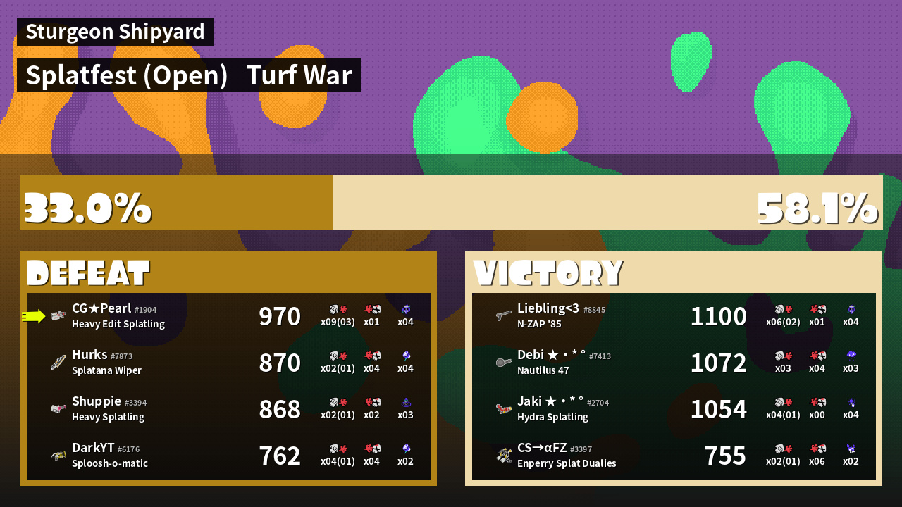 | Medals | #1 Overall Splatter #1 Turf Inker #1 Popular Target | ||