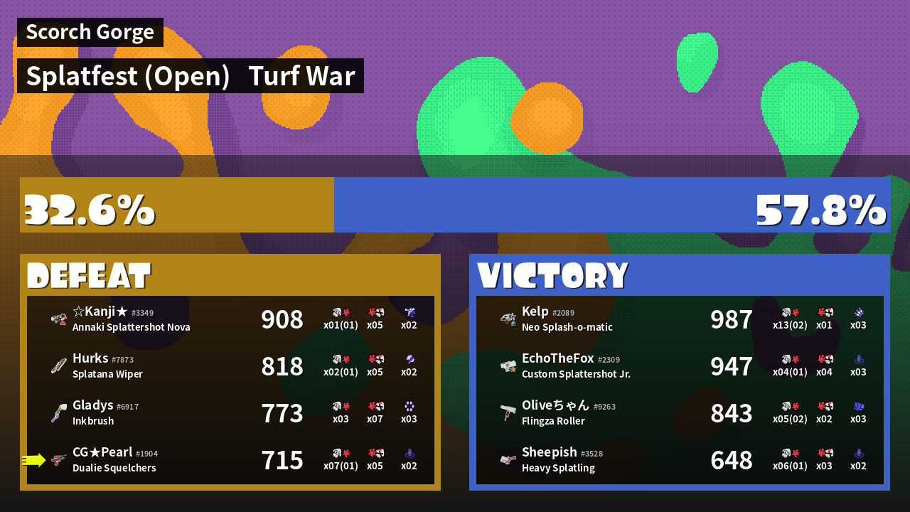 | Medals | #1 Overall Splatter #1 Enemy Splatter #1 Splat Assister | ||