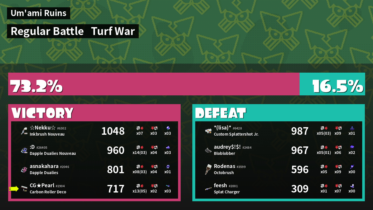 | Mode | Turf War - Regular Battle | ||