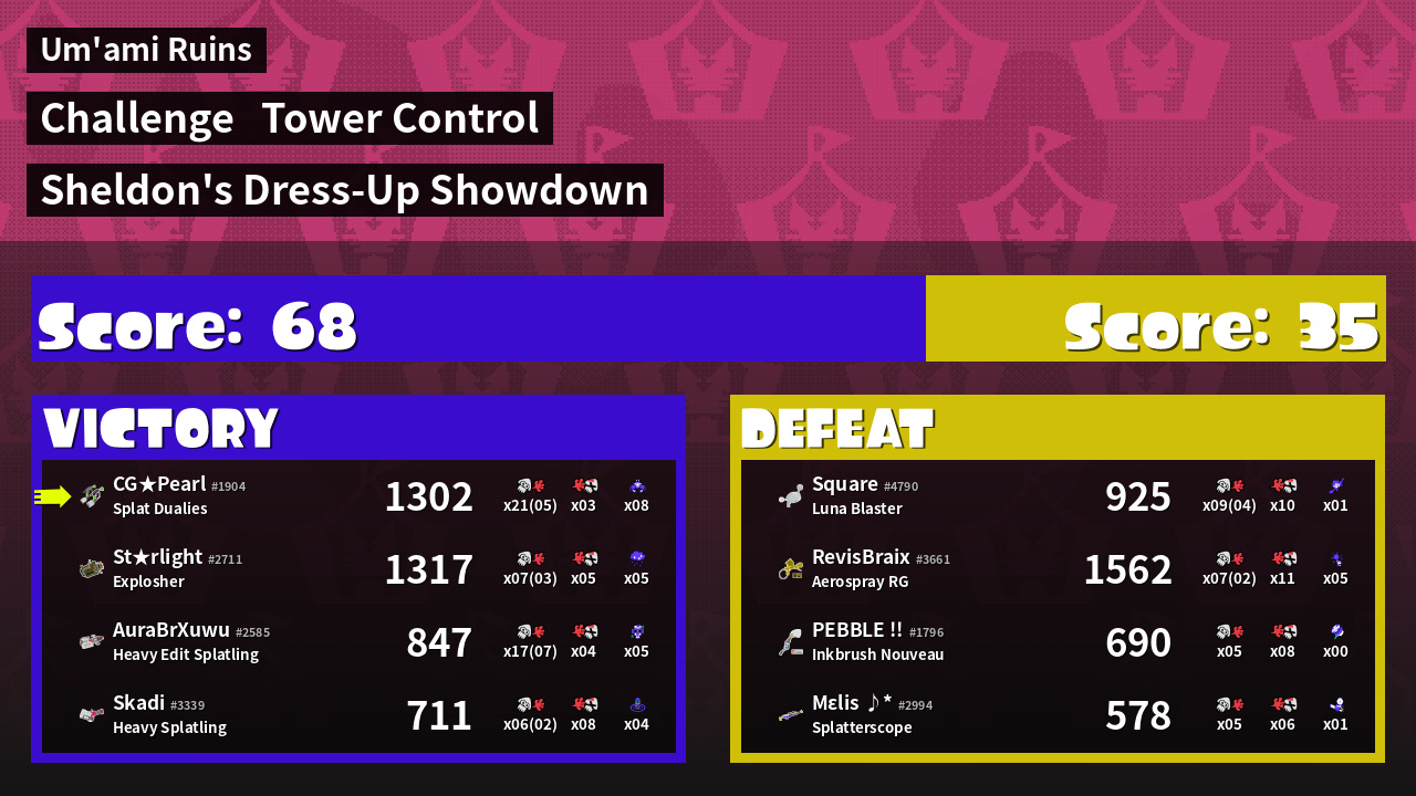 | Medals | #1 Overall Splatter Record-Score Setter #1 Popular Target | ||