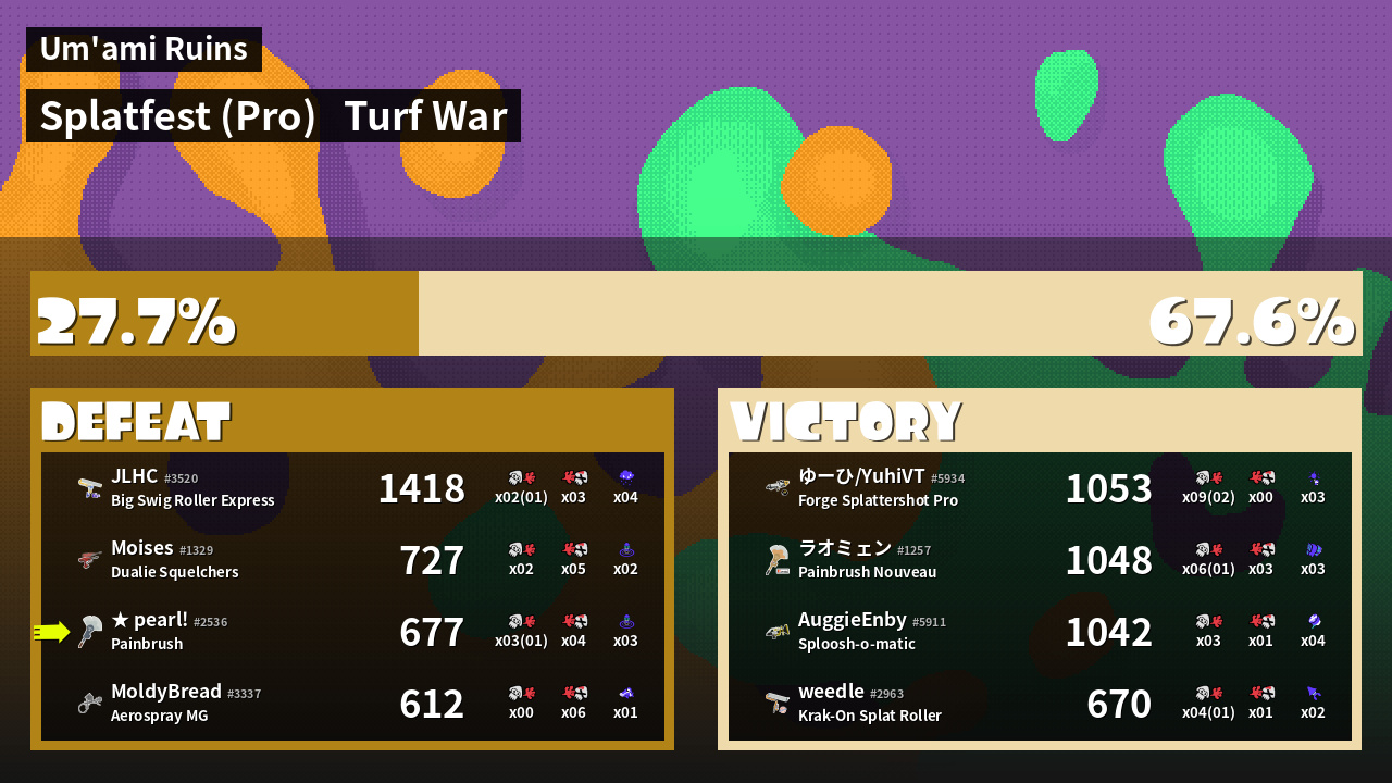 | Medals | #1 Overall Splatter #1 Enemy Splatter #1 Splat Assister | ||