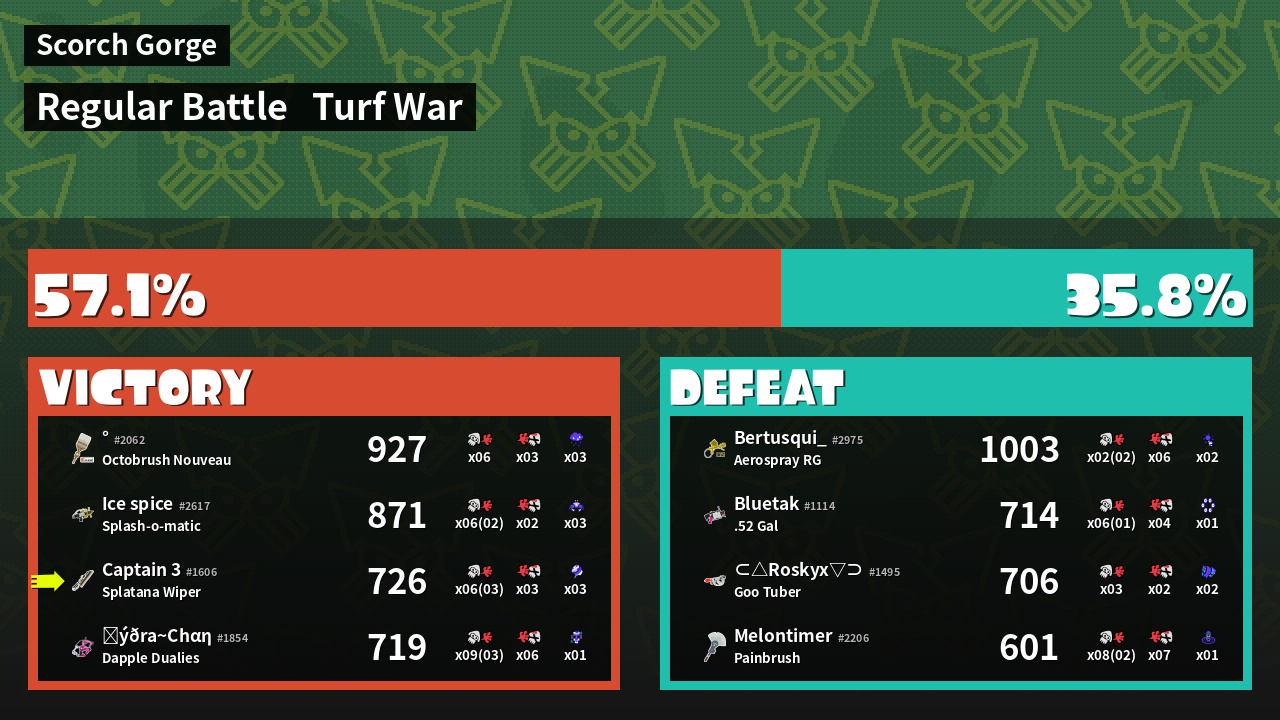 | Medals | #1 Super Jump Spot #1 Splat Assister #1 Ink Consumer | ||