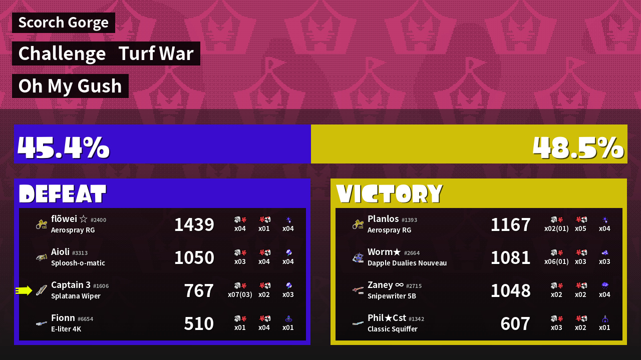 | Medals | #1 Overall Splatter #1 Enemy Splatter #1 Splat Assister | ||