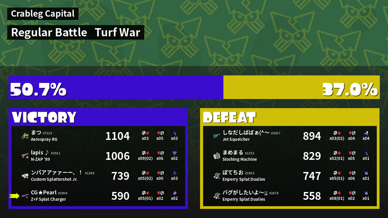 | Mode | Turf War - Regular Battle | ||