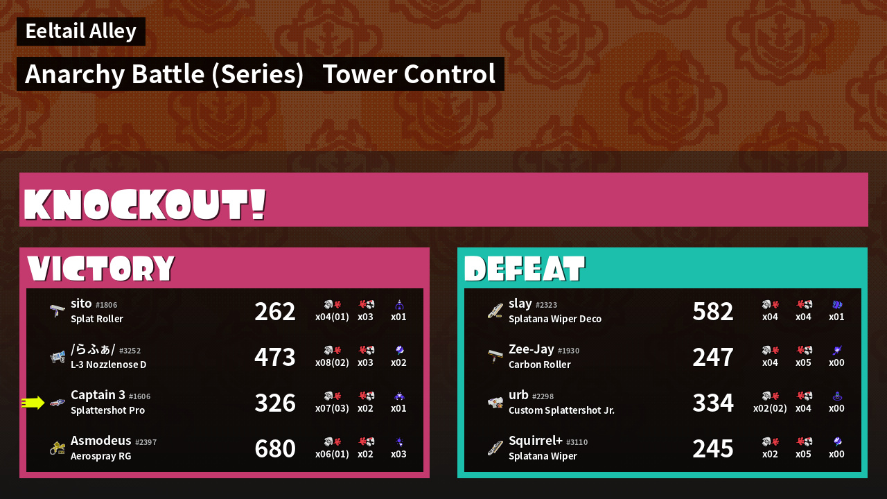 | Medals | Record-Score Setter #1 Splat Assister #1 Tower Stopper | ||