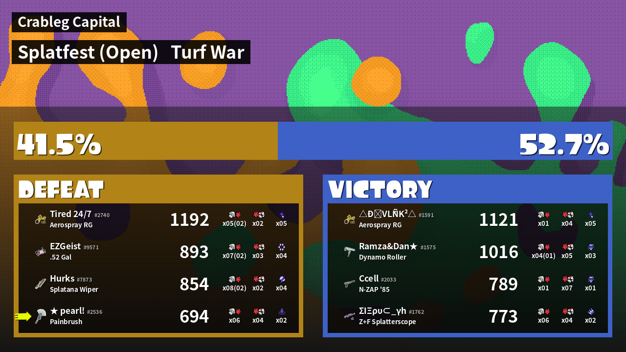 | Medals | #1 Home-Base Inker #1 Enemy Splatter #1 Ink Consumer | ||