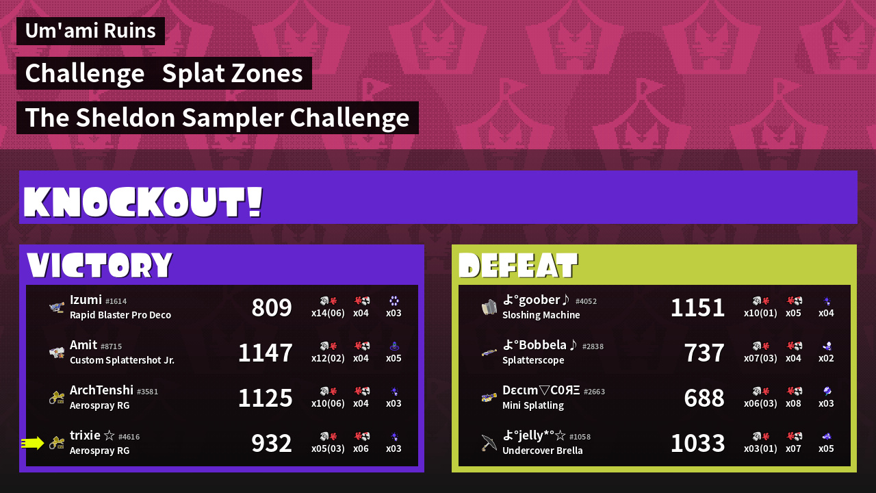 | Medals | #1 Super Jump Spot #1 Booyah Bomb User #2 Splat Zone Inker | ||