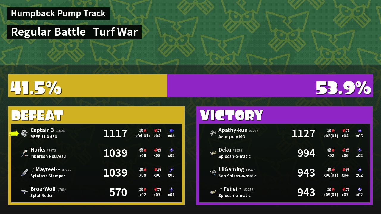 | Medals | #1 Turf Inker #1 Splat Assister #1 Damage Taker | ||