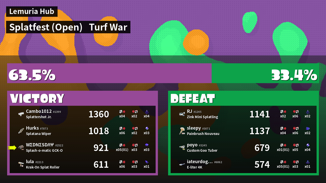 | Medals | #1 Enemy-Base Inker #1 Splat Assister #1 Ink Storm User | ||