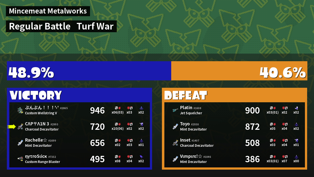 | Medals | #1 Overall Splatter #1 Splat Assister #1 Ground Traveler | ||