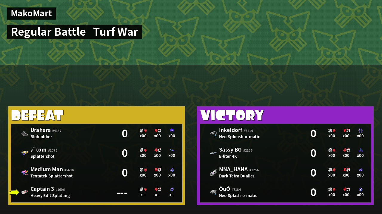 | Mode | Turf War - Regular Battle | ||