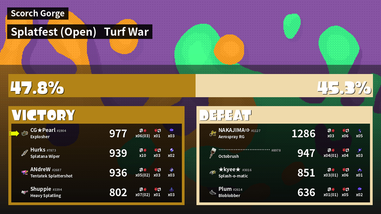 | Medals | #1 Turf Inker #1 Enemy-Base Inker #1 Splat Assister | ||