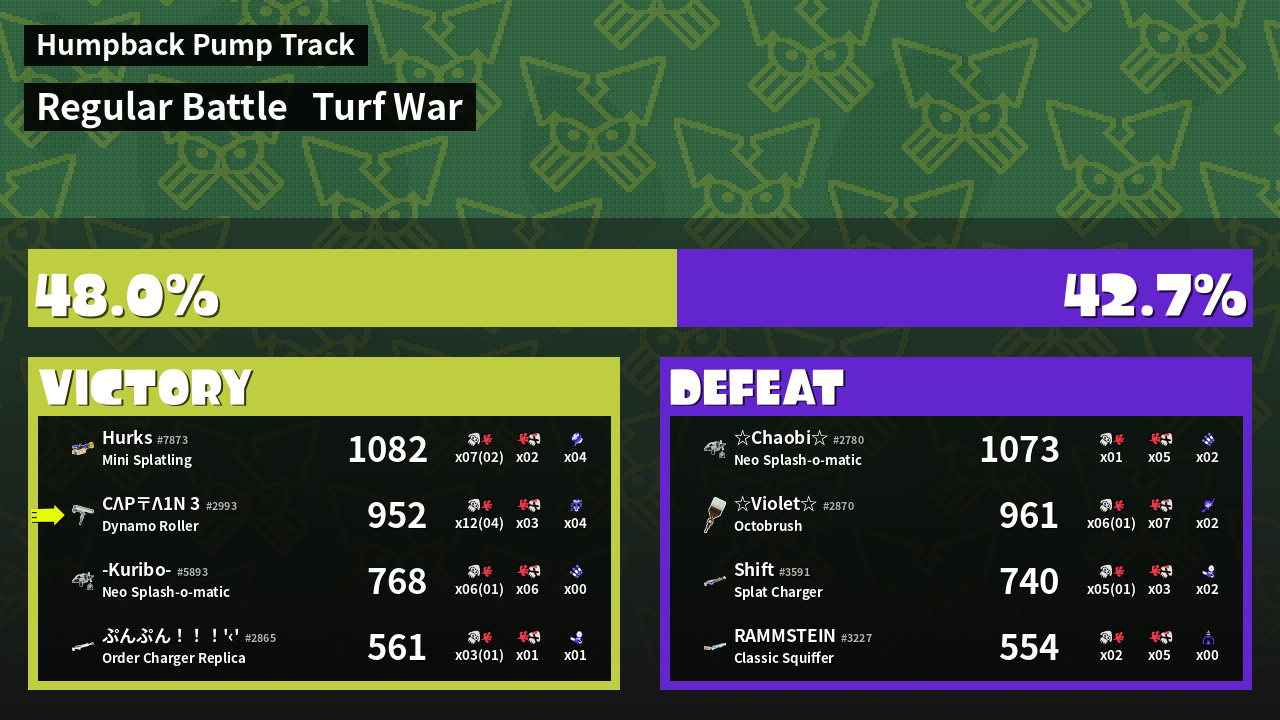 | Mode | Turf War - Regular Battle | ||