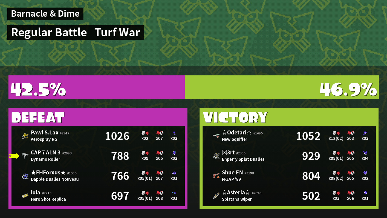 | Medals | #1 Overall Splatter #1 Popular Target #1 Enemy-Base Inker | ||