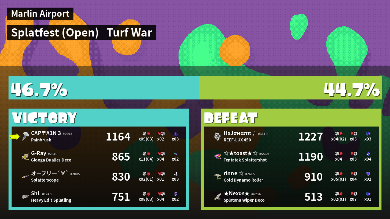 | Mode | Turf War - Splatfest (Open) | ||
