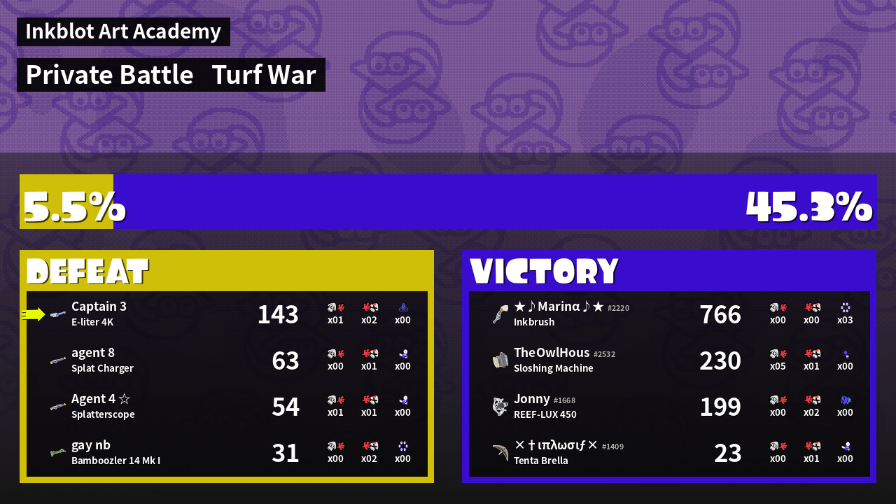 | Mode | Turf War - Private Battle | ||