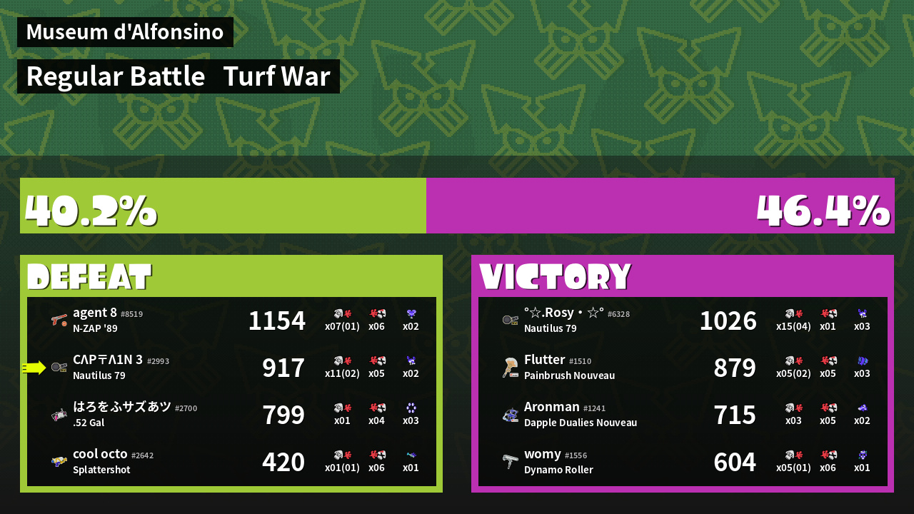 | Mode | Turf War - Regular Battle | ||