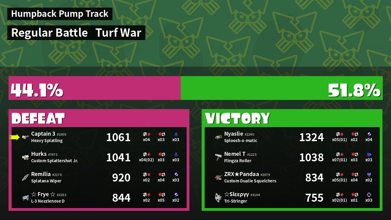 | Medals | #1 Overall Splatter #1 Turf Inker #1 Enemy Splatter | ||