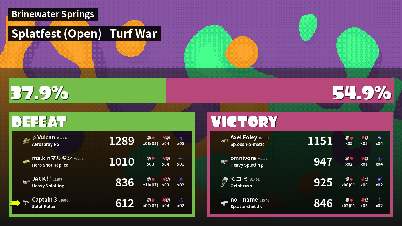 | Medals | #1 Popular Target #1 Enemy Splatter #1 Ink Consumer | ||