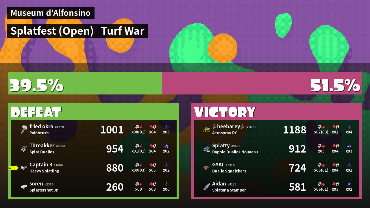 | Medals | #1 Overall Splatter #1 Splat Assister #1 Base Defender | ||