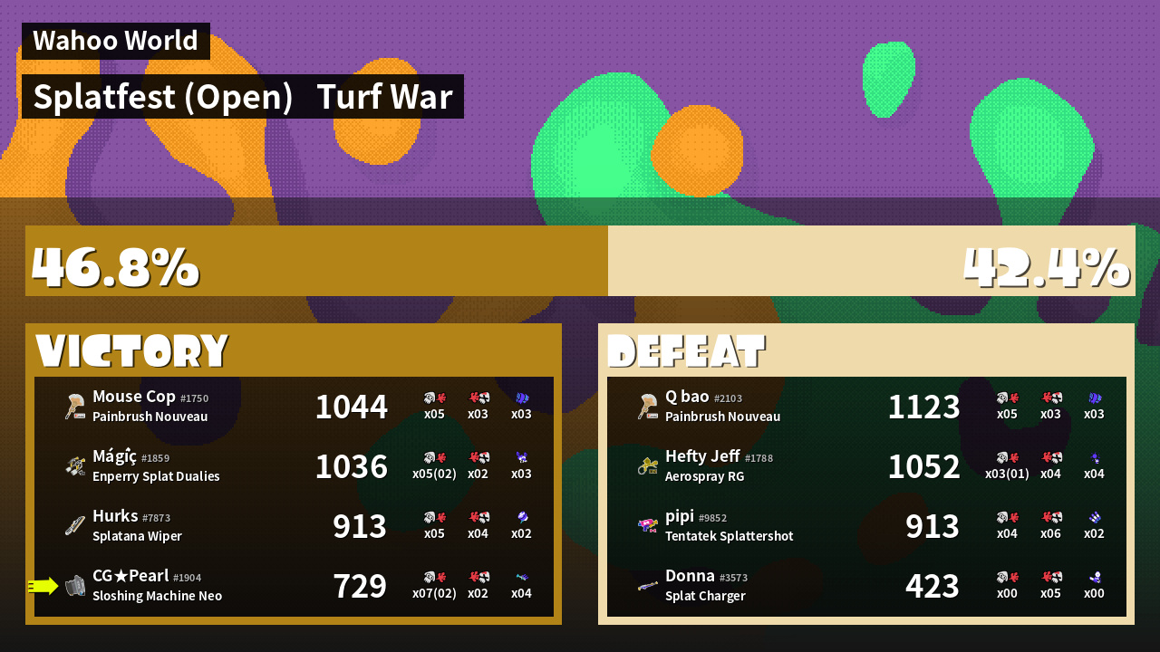 | Medals | #1 Overall Splatter #1 Home-Base Inker #1 Enemy Splatter | ||