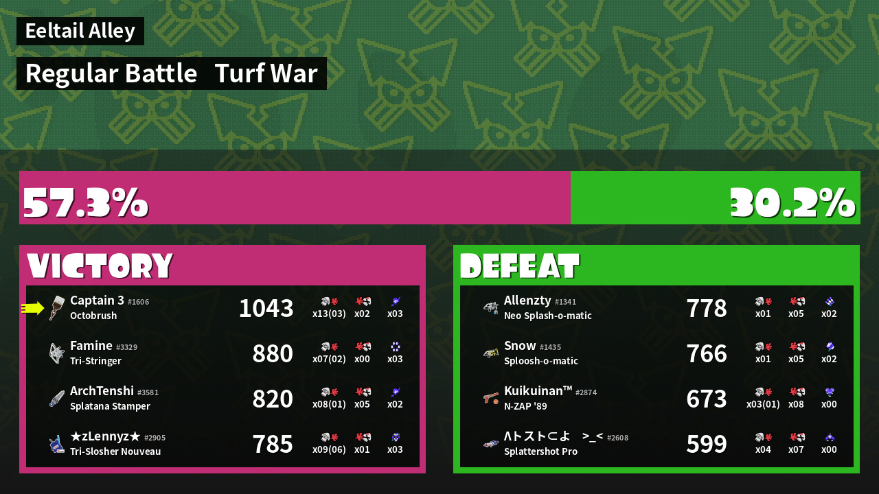 | Mode | Turf War - Regular Battle | ||