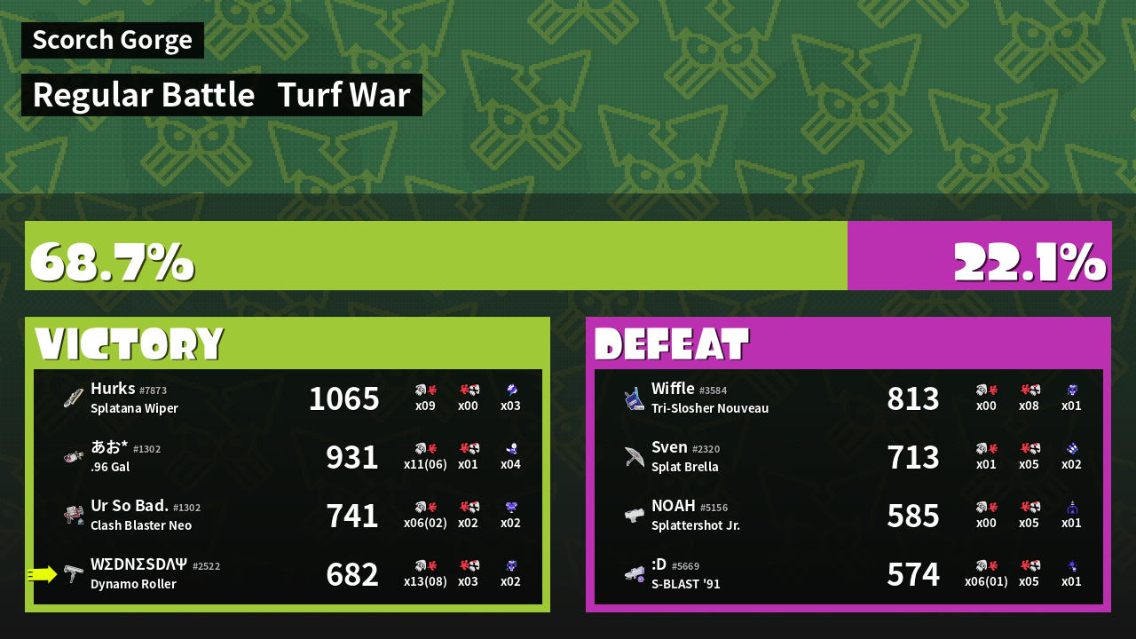 | Medals | #1 Overall Splatter #1 Splat Assister #1 Tacticooler User | ||