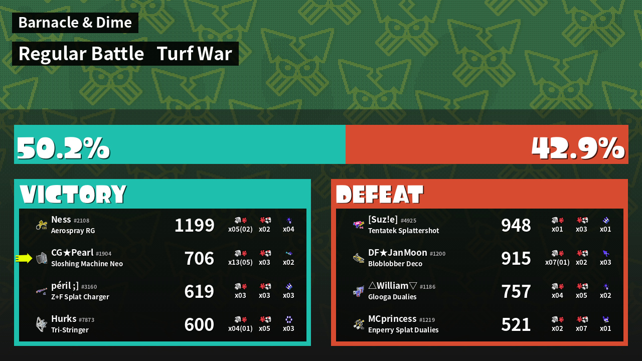 | Medals | #1 Overall Splatter #1 Popular Target #1 Enemy-Base Inker | ||