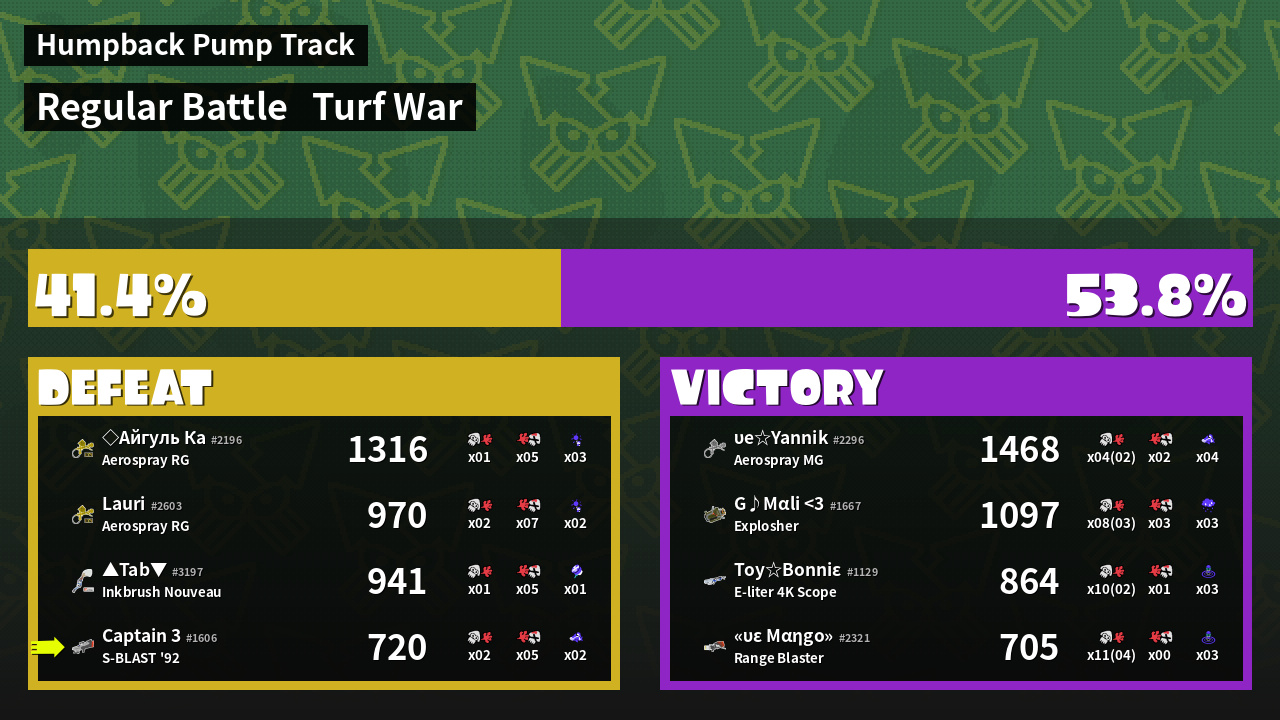 | Mode | Turf War - Regular Battle | ||