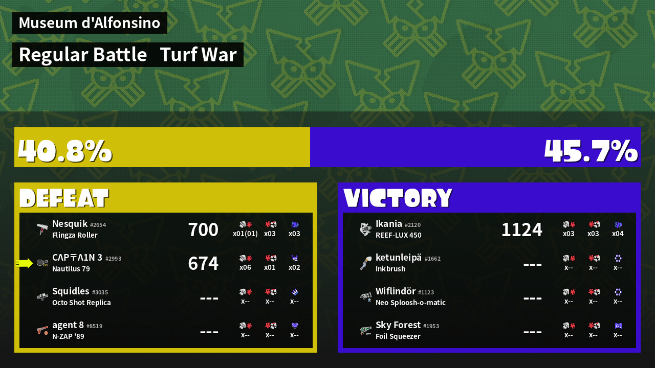| Mode | Turf War - Regular Battle | ||