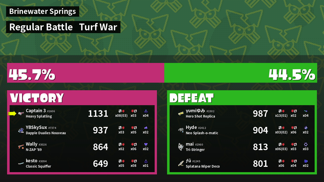 | Mode | Turf War - Regular Battle | ||
