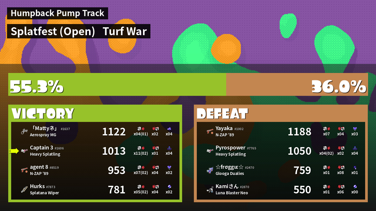 | Medals | #1 Overall Splatter #1 Popular Target #1 Super Jump Spot | ||