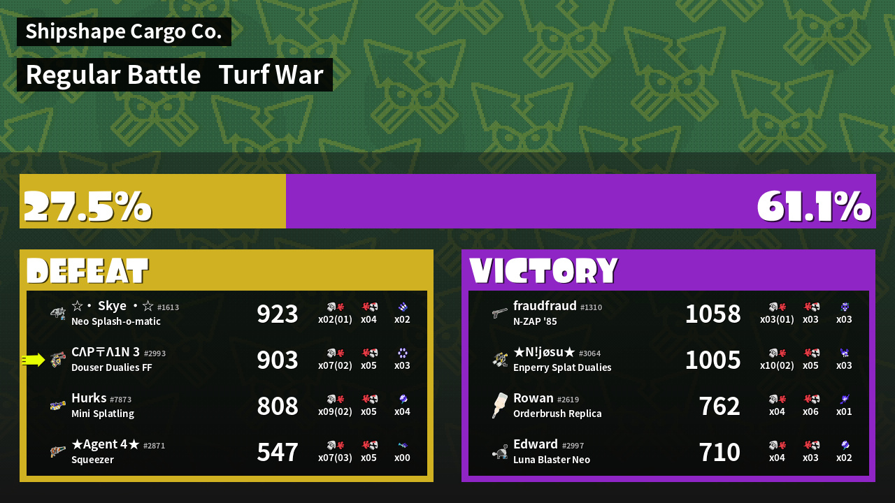 | Medals | #1 Super Jump Spot #2 Overall Splatter #2 Turf Inker | ||