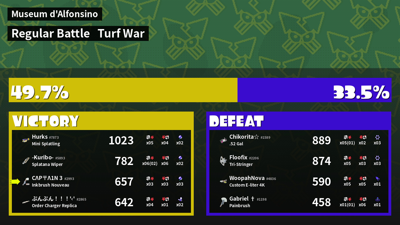 | Mode | Turf War - Regular Battle | ||