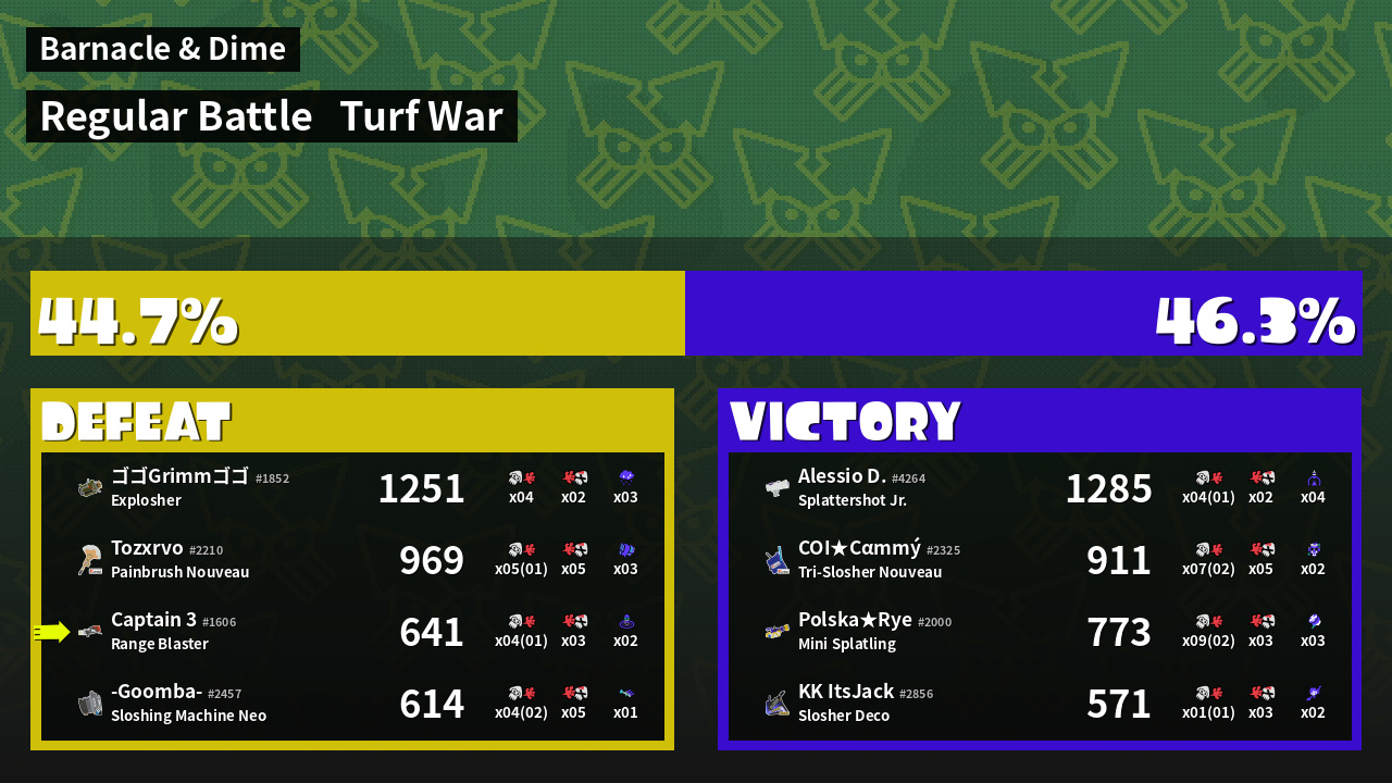 | Mode | Turf War - Regular Battle | ||