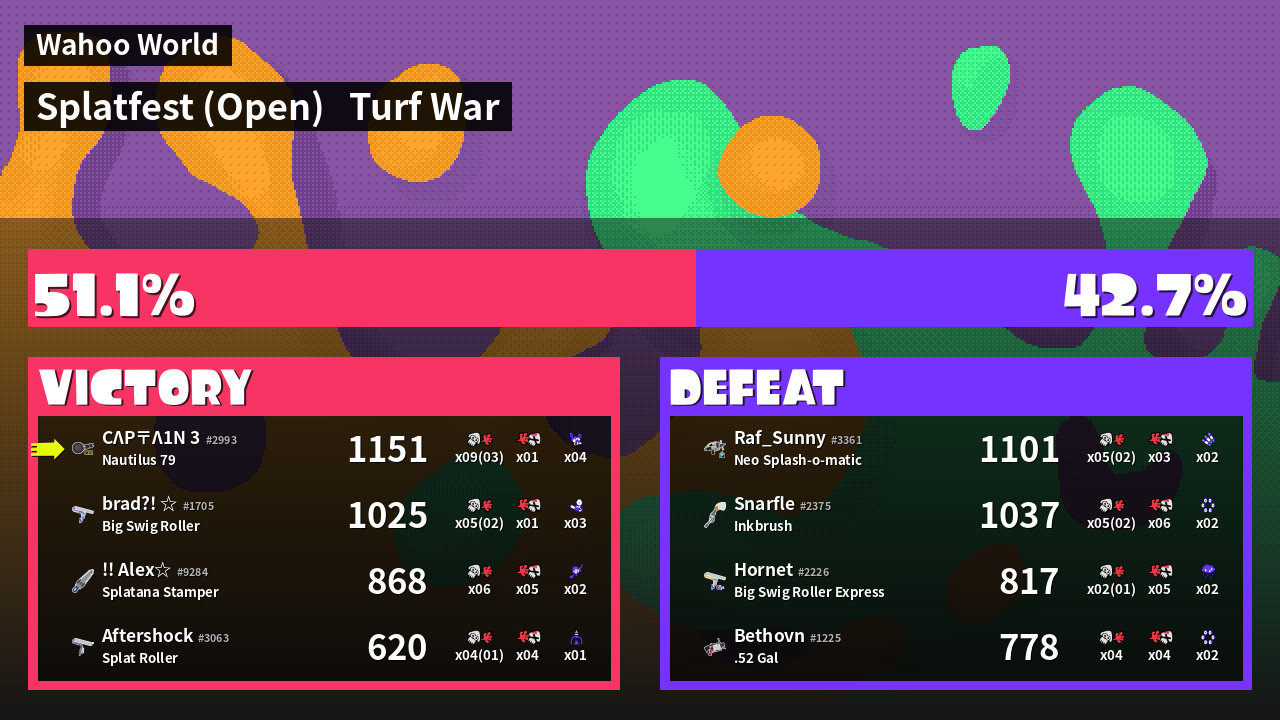 | Mode | Turf War - Splatfest (Open) | ||