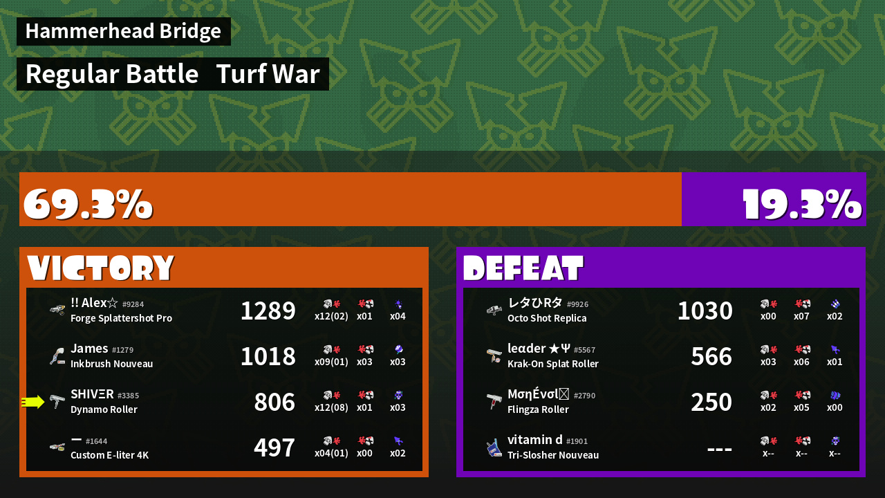 | Medals | #1 Overall Splatter #1 Splat Assister #1 Ground Traveler | ||