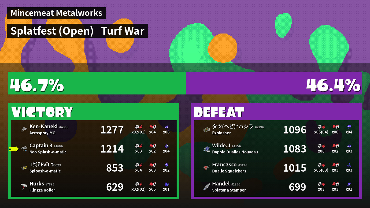 | Medals | #1 Enemy-Base Inker #1 Super Jump Spot #1 Ink Consumer | ||