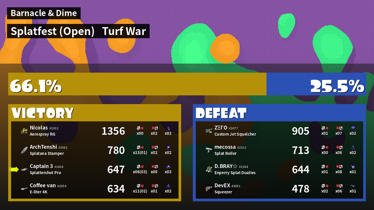 | Medals | #1 Super Jump Spot #1 Splat Assister #1 Ground Traveler | ||