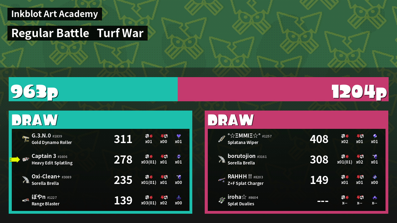 | Mode | Turf War - Regular Battle | ||
